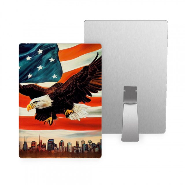 The perfect wall decor: Bald Eagle American Flag Metal Photo Prints create eye-catching accent for your bathroom, living room, bedroom, dining room, kitchen, or office. Make your home a chic and cozy place with these unique art pieces. Available in size of  5 x 7 inches, with the size of the bracket being 3.3 x 0.6 x 0.2 inches.
