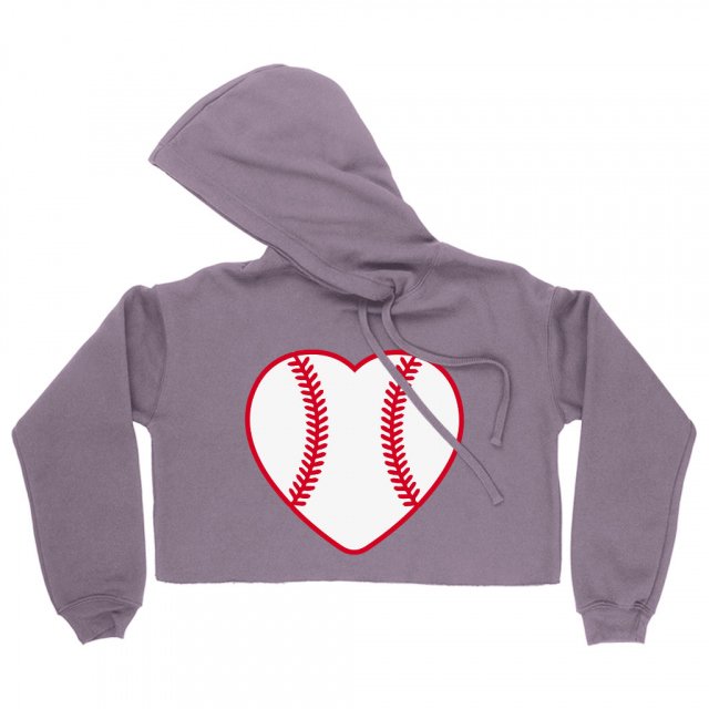 Baseball Heart Women’s Cropped Hoodie – Sports Theme Cropped Hoodie – Printed Hooded Sweatshirt
