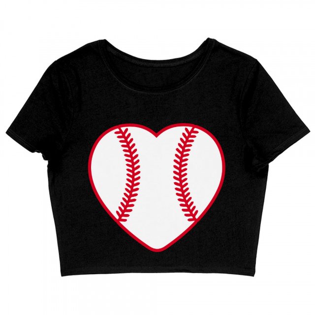 Baseball Heart Women’s Cropped T-Shirt – Sports Theme Crop Top – Printed Crop Tee Shirt