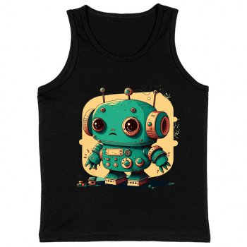 Robot Print Kids’ Jersey Tank – Kawaii Sleeveless T-Shirt – Vintage Kids’ Tank Top