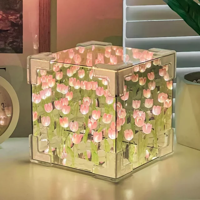 What sets this lamp apart is its combination of creativity, functionality, and elegance. Unlike typical night lights, the DIY Tulip Mirror Cube Lamp offers the added benefit of a personal crafting experience. Assemble the 20 tulips in your own way to create a beautiful, one-of-a-kind night light that will add character to any room. Not only does it serve as a glowing lamp, but the mirror cube provides additional versatility, making it both a functional light source and a decorative piece that complements modern, minimalist, or bohemian-style interiors.