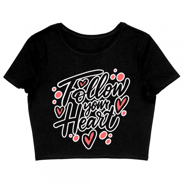 Follow Your Heart Women’s Cropped T-Shirt – Quote Design Crop Top – Printed Crop Tee Shirt