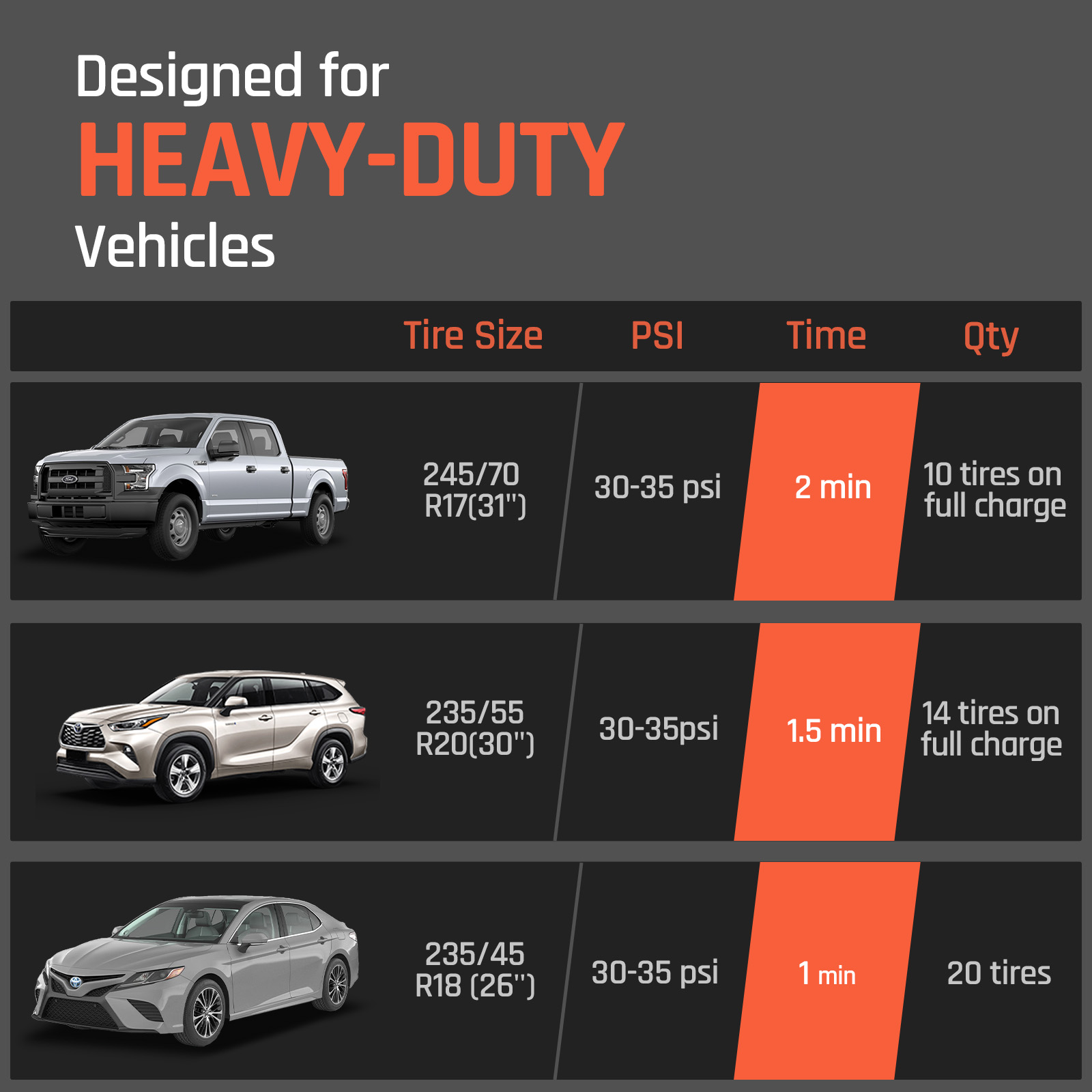 Don’t waste time waiting for your tires to inflate. With its 100% duty cycle and advanced design, this tire inflator works continuously without overheating, delivering quick results every time. It efficiently fills up standard car tires in just minutes—perfect for road trips, emergency situations, or regular tire maintenance. Whether you’re caught in a flat tire situation or just need to top up your pressure, this air compressor will get you back on the road in no time.
