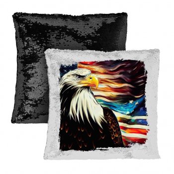 Bald Eagle Sequin Pillow Case – American Eagle Pillow Case – USA Flag Pillowcase