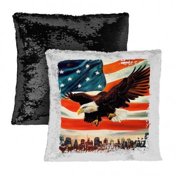 Bald Eagle American Flag Sequin Pillow Case – USA Eagle Pillow Case – Patriotic Pillowcase