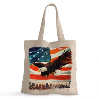 Bald Eagle American Flag Small Tote Bag – USA Eagle Shopping Bag – Patriotic Tote Bag
