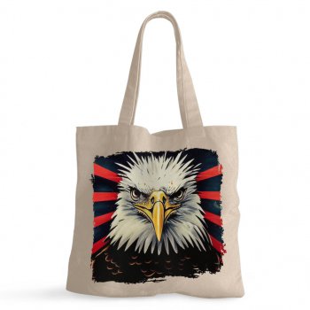 Bald Eagle Drawing Small Tote Bag – Patriotic Shopping Bag – USA Flag Tote Bag