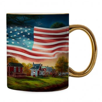 USA Flag Mug – America Gold Rim and Handle Mug – Patriotic Mug
