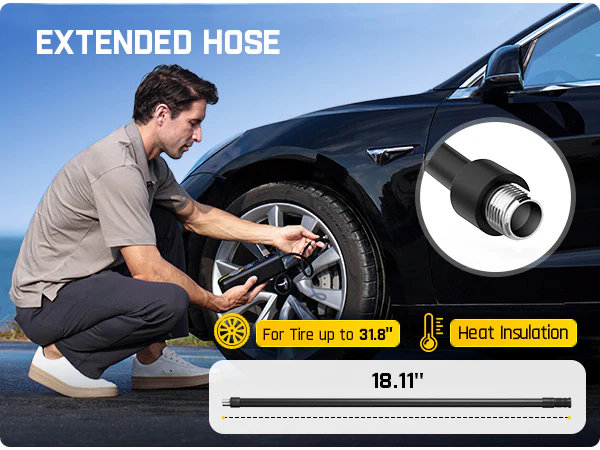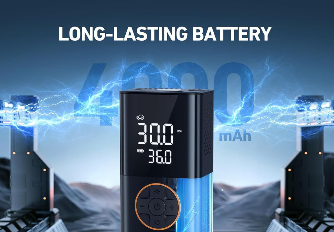 - Long-Lasting Battery: With the ability to inflate up to four car tires on a single charge, its robust battery ensures you have enough power for multiple uses before needing a recharge.