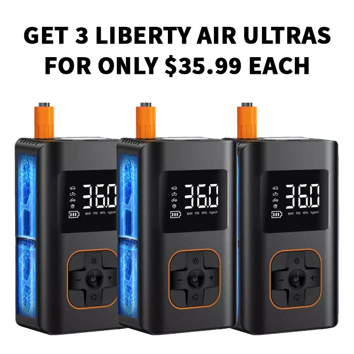 Now is the time to save 75% and get the top rated wireless tire inflator so you are prepared the next time you walk out to your car or truck and discover a flat tire. Plus, the Liberty Air Ultra is one of the only portable tire inflators versatile enough that it can quickly inflate car tires, big off-road truck tires, racing tires, bicycle tires, big rig tires, and even wheel barrel tires.
