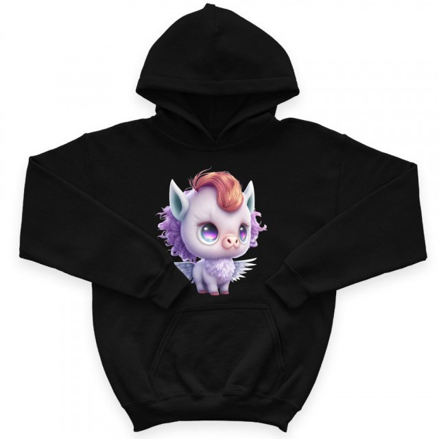 Kawaii Pegasus Kids’ Sponge Fleece Hoodie is no ordinary piece of clothing. Its top-stitched hood and
