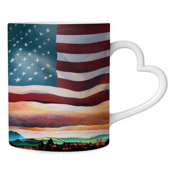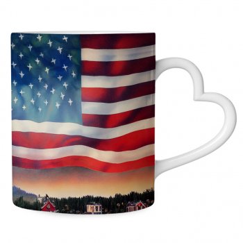 Vintage Town Mug with Heart Handle – USA Flag Mug – Patriotic Ceramic Mug