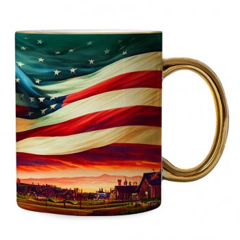 USA Themed Mug – American Flag Gold Rim and Handle Mug – USA Town Mug