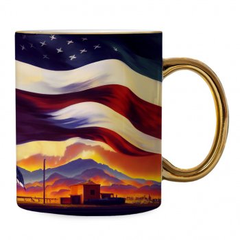 Patriotic Themed Mug – America Gold Rim and Handle Mug – USA Flag Mug