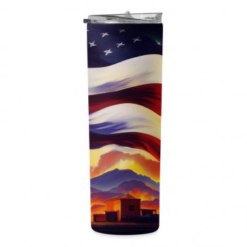 American Flag 20oz Skinny Tumbler – USA Town Travel Mug – Patriotic 20oz Skinny Tumbler