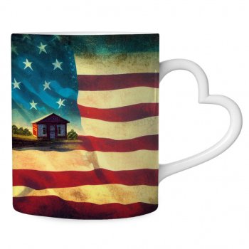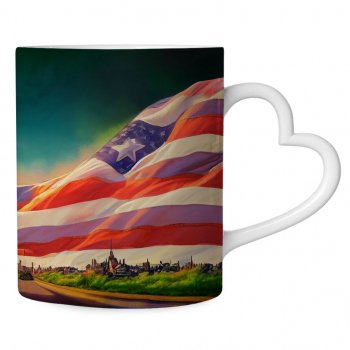America Mug with Heart Handle – Patriotic Mug – Art Print Ceramic Mug