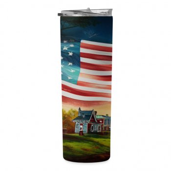 USA Flag 20oz Skinny Tumbler – America Travel Mug – Patriotic 20oz Skinny Tumbler