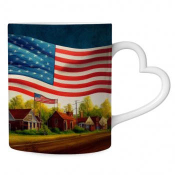 Patriotic Mug with Heart Handle – USA Town Mug – Art Print Ceramic Mug
