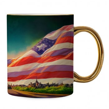 USA Village Mug – American Flag Gold Rim and Handle Mug – Printed Mug