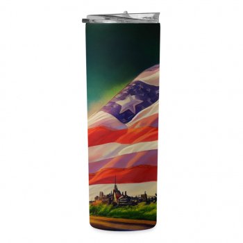 USA Village 20oz Skinny Tumbler – American Flag Travel Mug – Printed 20oz Skinny Tumbler