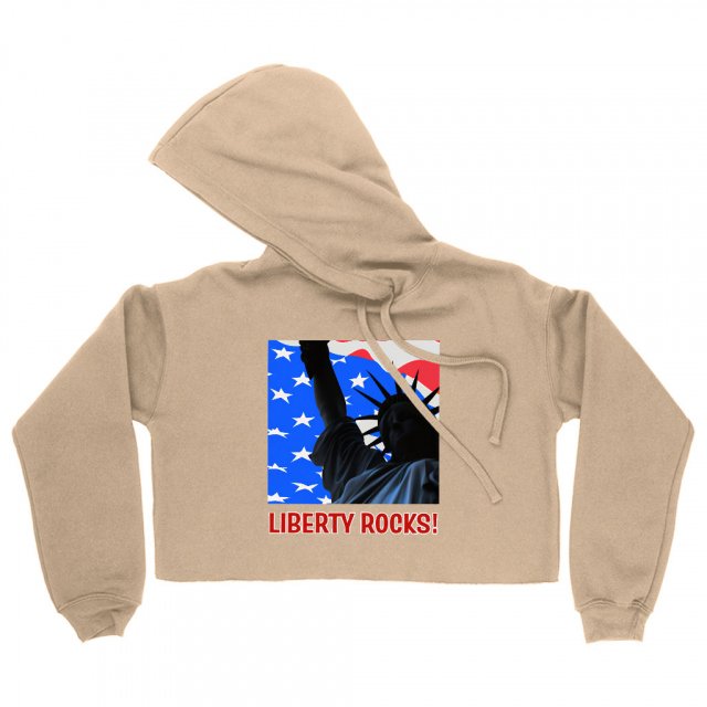 Liberty Print Women’s Cropped Hoodie – USA Flag Cropped Hoodie – Trendy Hooded Sweatshirt