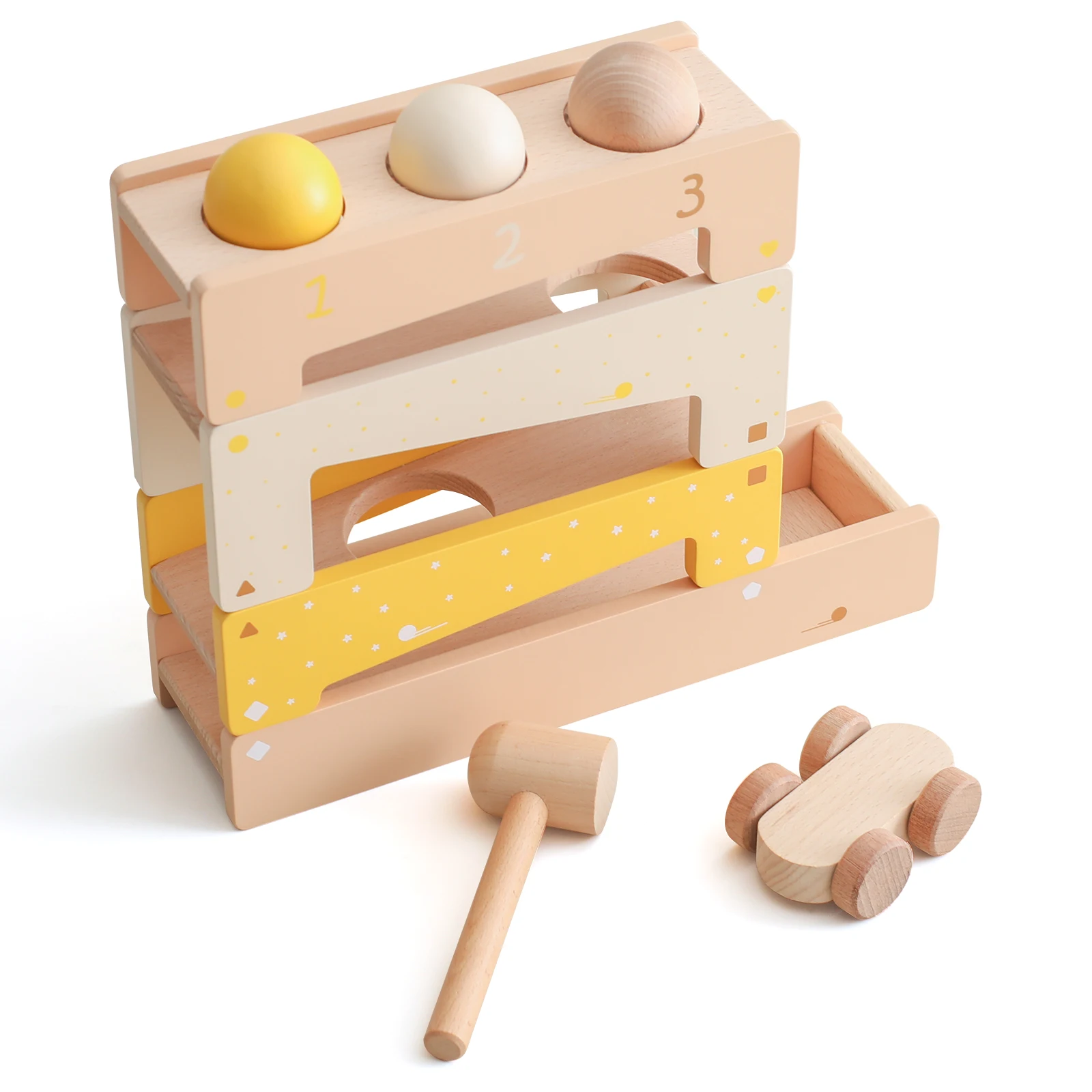 Constructed with a focus on quality and safety, this toy features a sturdy wooden track that allows balls to roll and knock through various obstacles. As your child interacts with the toy, they will be fascinated by the movement of the balls, which helps enhance their hand-eye coordination, problem-solving skills, and sensory exploration. The Montessori Track Knocking Ball Toy is an excellent choice for parents who want to provide their toddlers with a fun and educational experience.