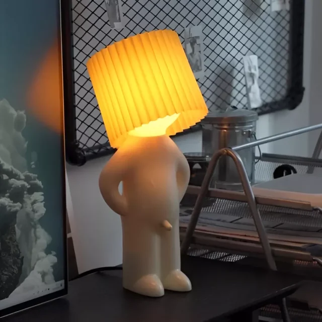 • Unique Design: The lamp features a cheeky “shy boy” figure that adds personality and fun to any room.