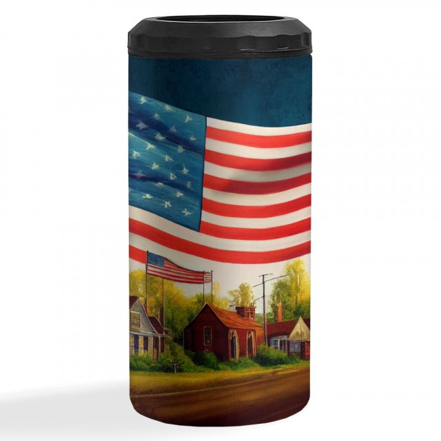 Patriotic Insulated Slim Can Cooler – USA Town Can Cooler – Art Print Insulated Slim Can Cooler