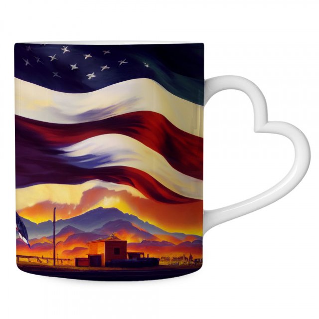 Patriotic Themed Mug with Heart Handle – America Mug – USA Flag Ceramic Mug