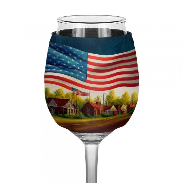 Patriotic Wine Glass Sleeve – USA Town Sleeves for Wine Glass – Art Print Wine Glass Sleeve