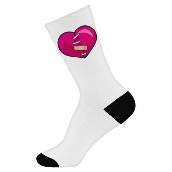 Stitched Up Heart Socks – Pink Heart Novelty Socks – Graphic Crew Socks