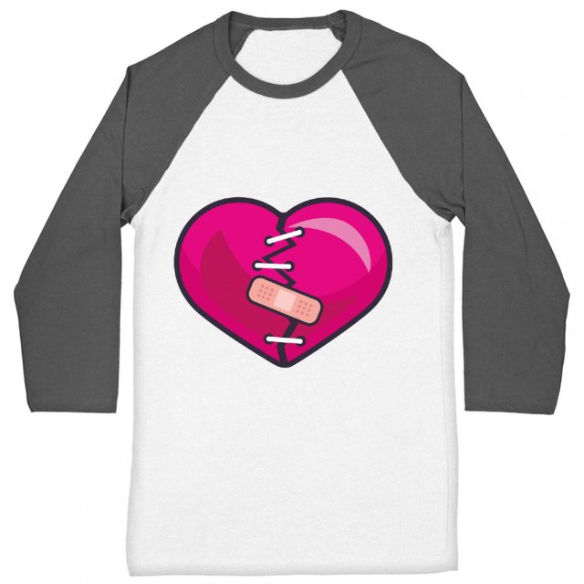 Stitched Up Heart Baseball T-Shirt – Pink Heart T-Shirt – Graphic Tee Shirt