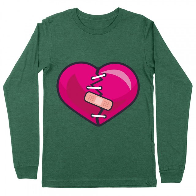 Stitched Up Heart Long Sleeve T-Shirt – Pink Heart T-Shirt – Graphic Long Sleeve Tee Shirt