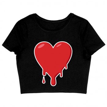 Red Heart Women’s Cropped T-Shirt – Heart Print Crop Top – Dripping Heart Crop Tee Shirt