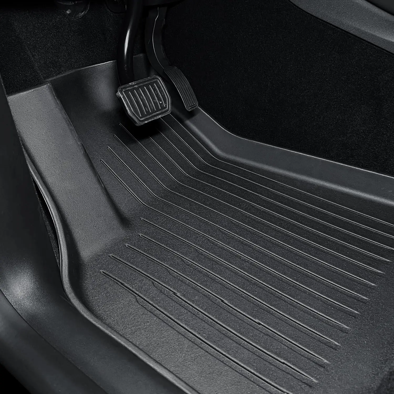 Upgrade your Tesla Model 3 or Y with these high-quality, all-weather floor mats designed to provide superior protection and unmatched durability. Crafted from environmentally friendly TPE material, these mats perfectly fit the contours of your vehicle’s floor, offering a custom fit for maximum coverage and protection. Whether it’s rain, snow, or mud, these floor mats are engineered to withstand it all, keeping your car’s interior clean and dry year-round.