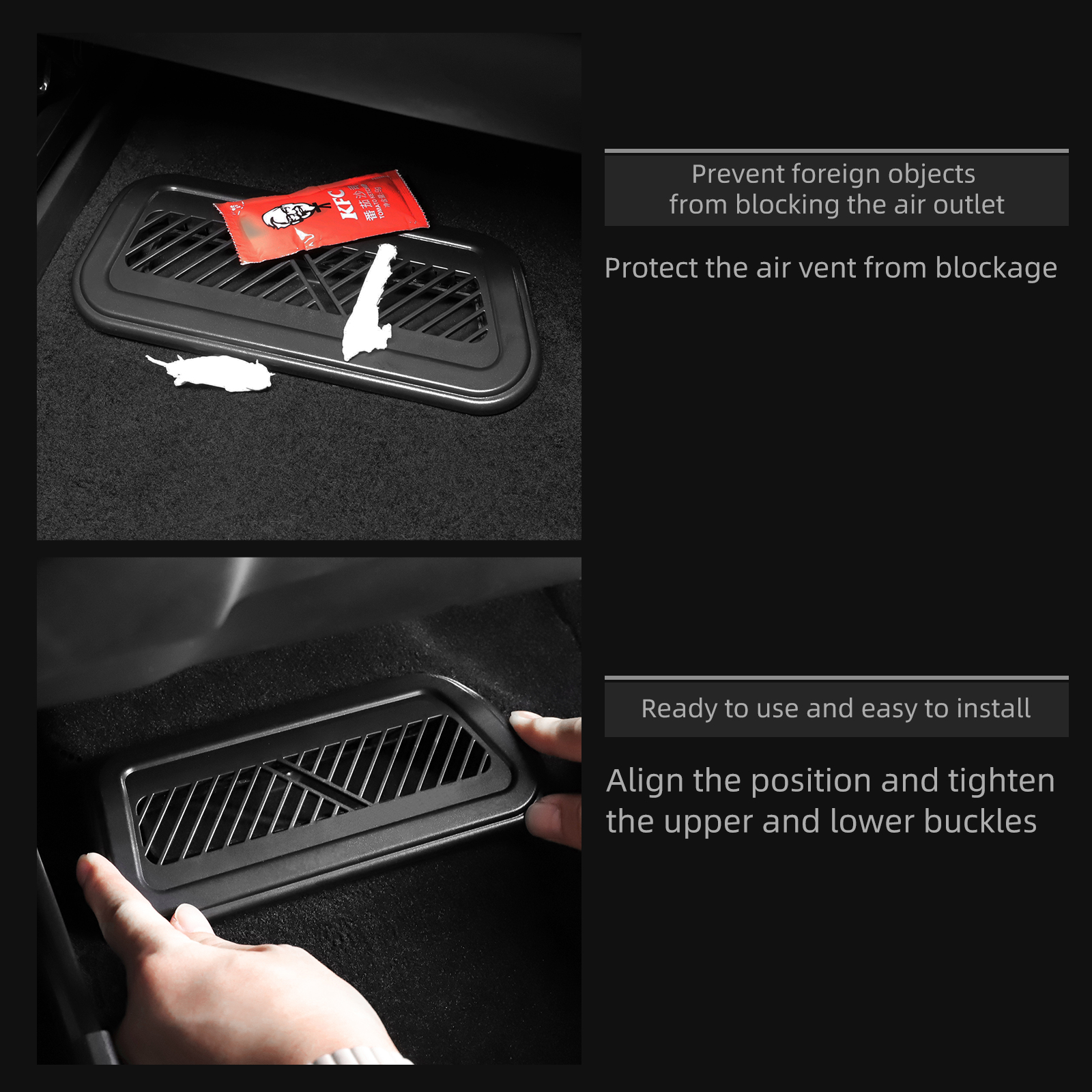 Enhance the interior of your Tesla Model S with this sleek and practical Under Seat Air Outlet Grille Protector. Designed for the 2023-2024 model years, this high-quality accessory ensures that your air vents remain free from dust, debris, and blockages, keeping your cabin air flowing smoothly and efficiently. Whether you’re a daily commuter or a road trip enthusiast, this simple yet essential accessory will make your driving experience even more enjoyable.
