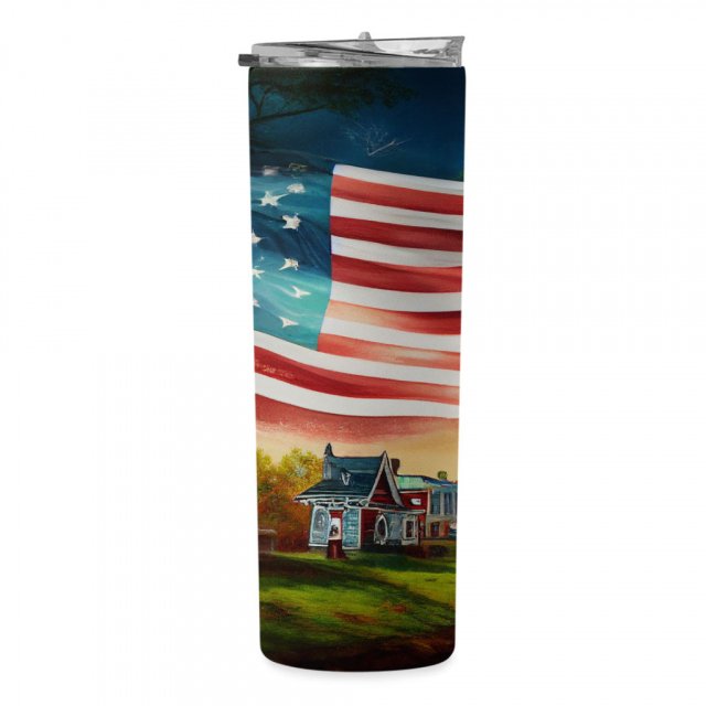 USA Flag 20oz Skinny Tumbler – America Travel Mug – Patriotic 20oz Skinny Tumbler