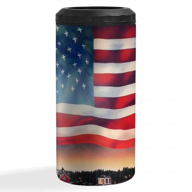 Vintage Town Insulated Slim Can Cooler – USA Flag Can Cooler – Patriotic Insulated Slim Can Cooler